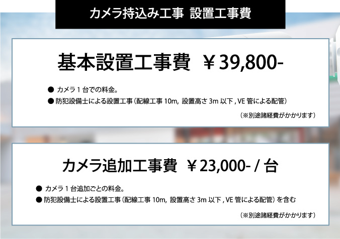 ◆ | ご購入されたカメラ持込みによる工事の場合は、遠隔監視の設定作業は承っておりません。何卒ご了承ください。 |