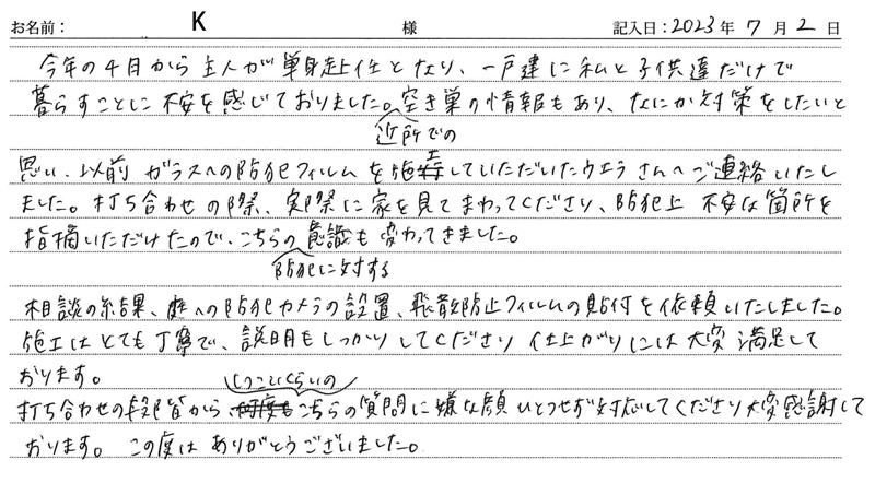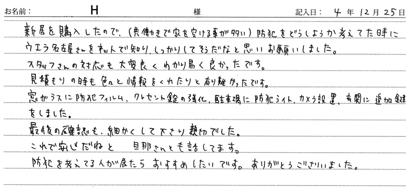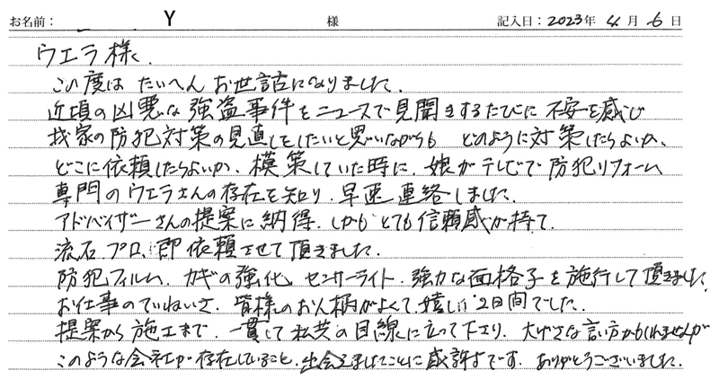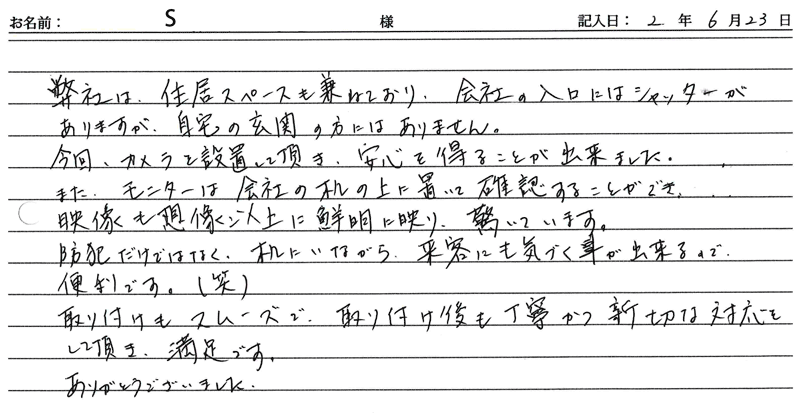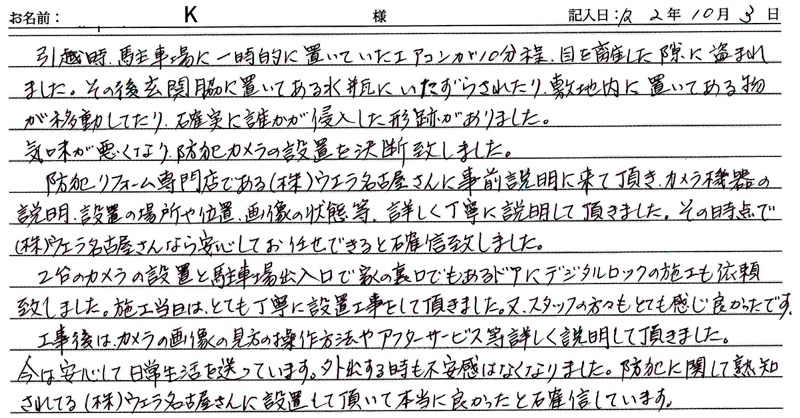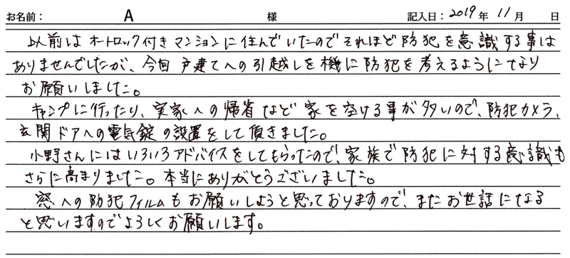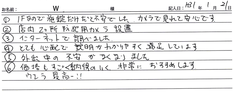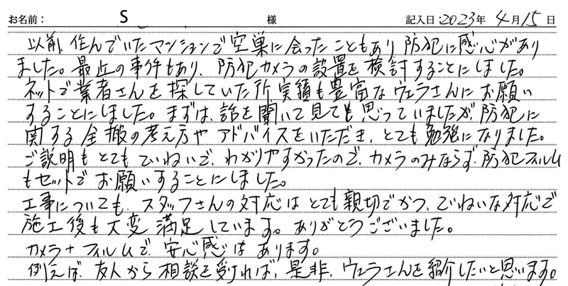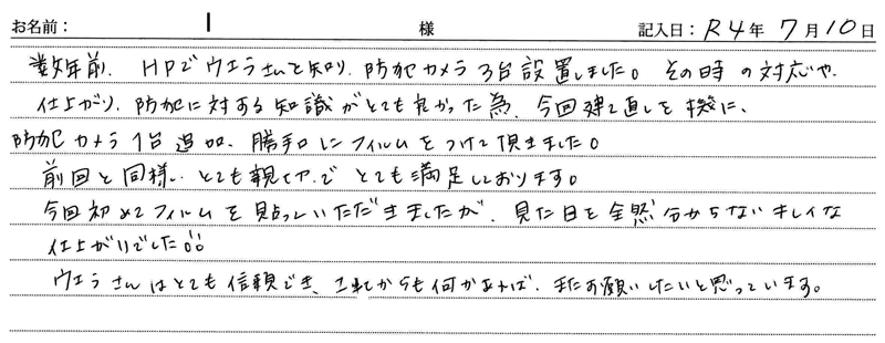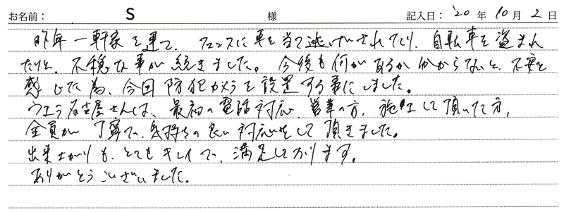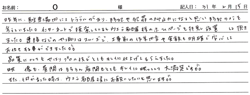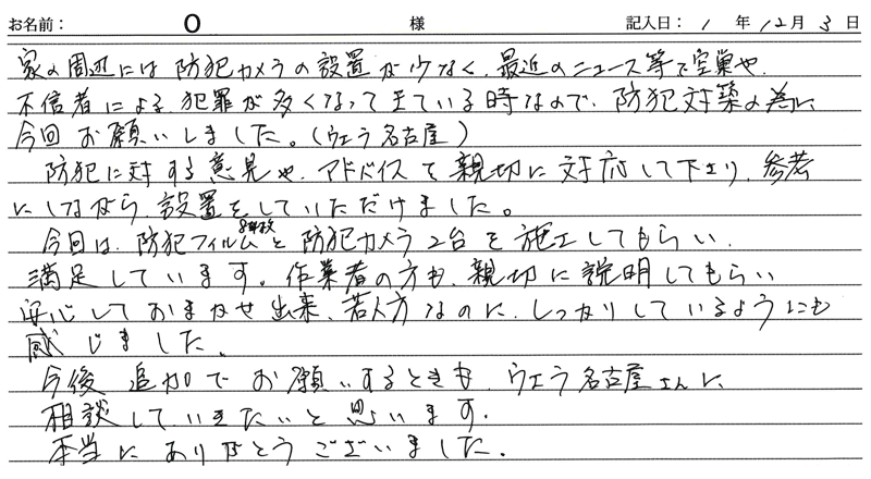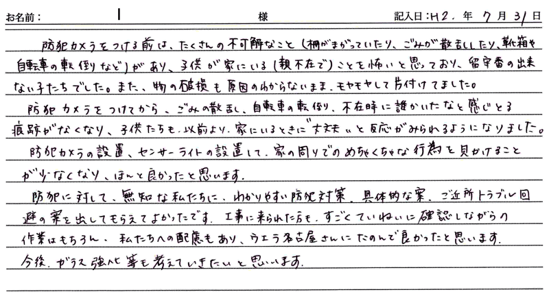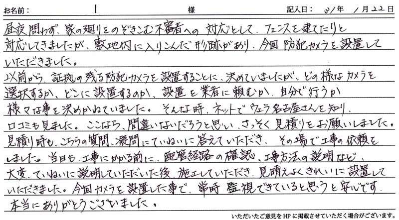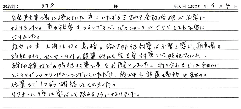※これまでに、一般家庭を含め施工させて頂いた中で、ご返信頂きましたお客様の声をご紹介します。