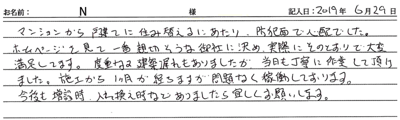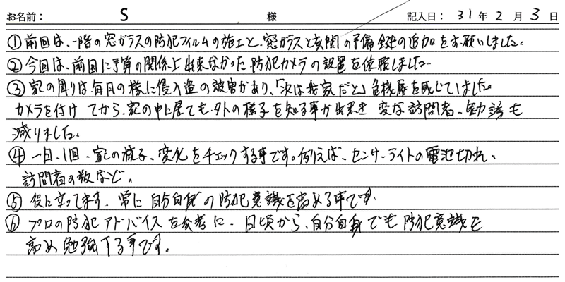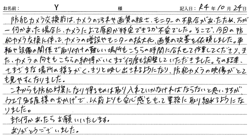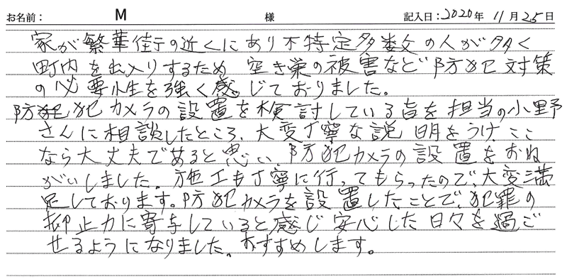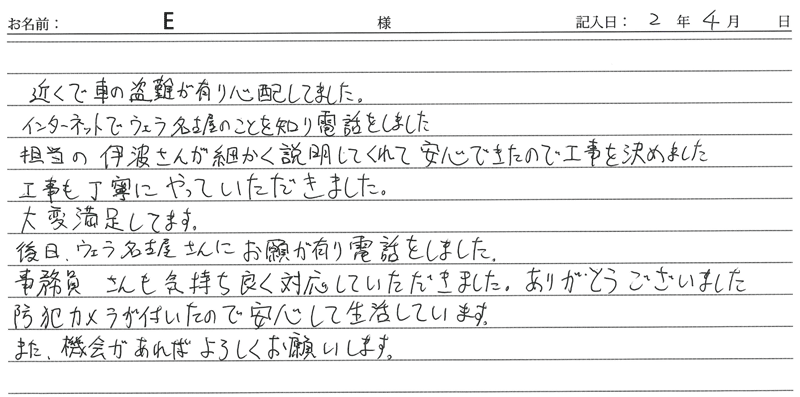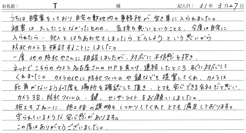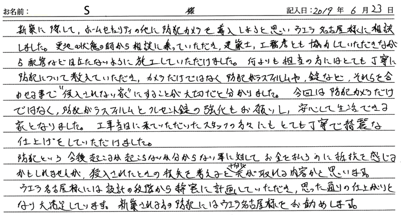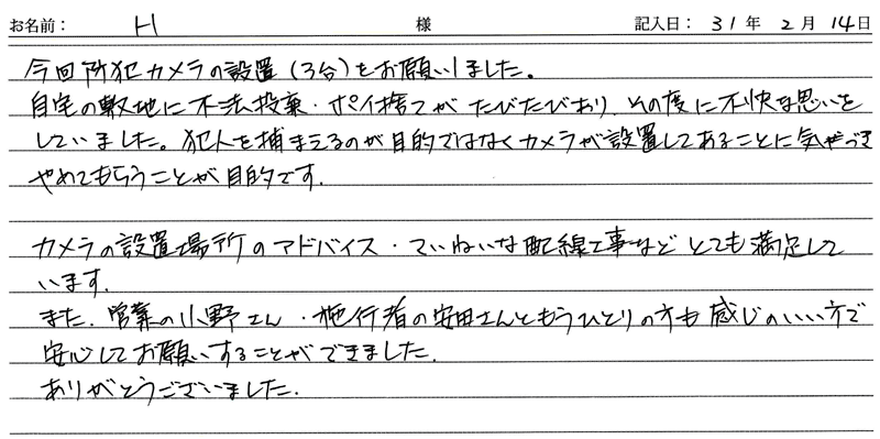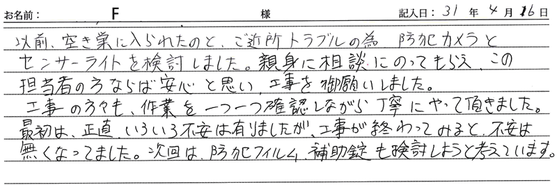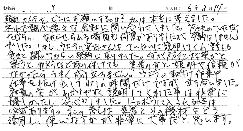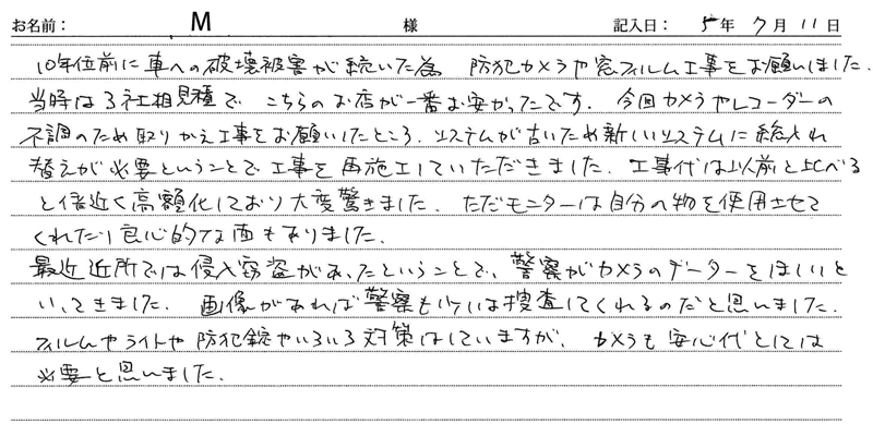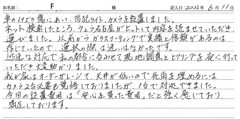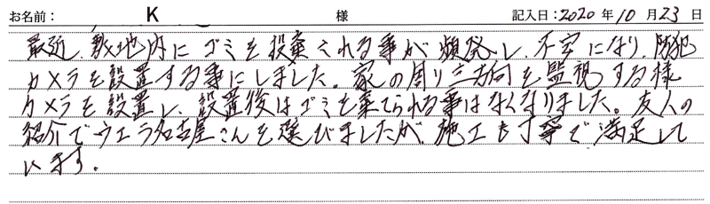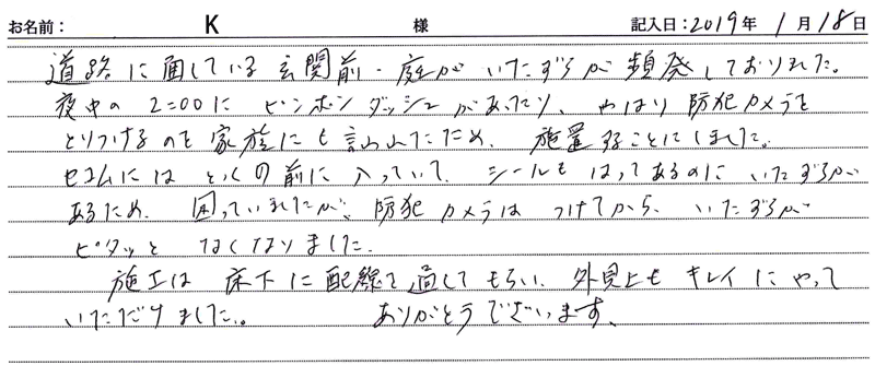 ※これまでに、一般家庭を含め施工させて頂いた中で、ご返信頂きましたお客様の声をご紹介します。