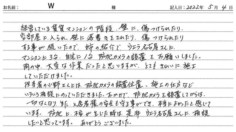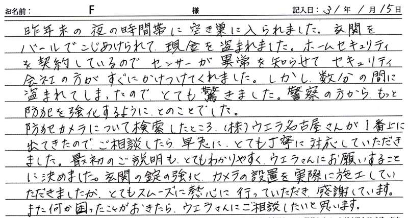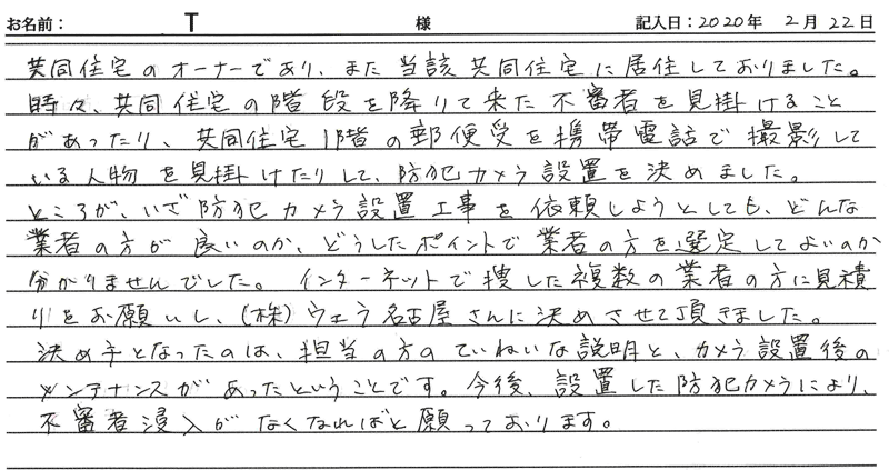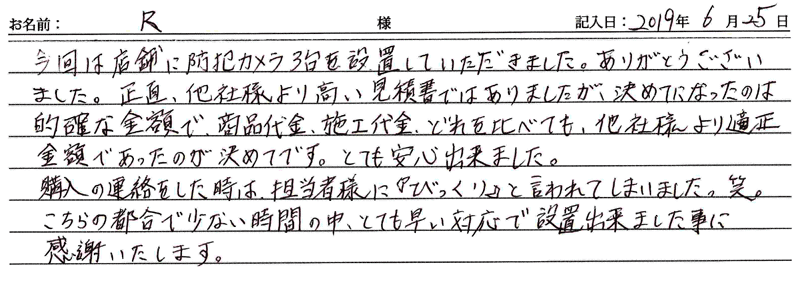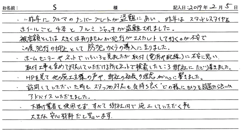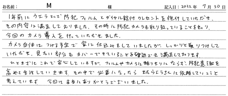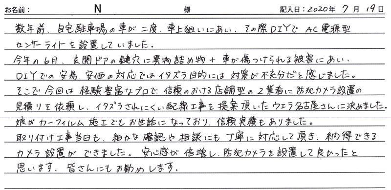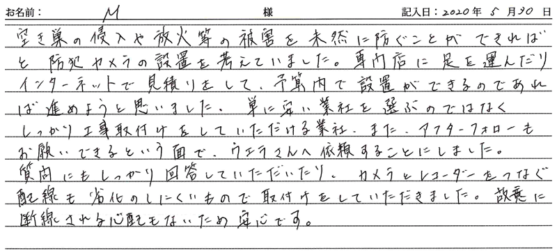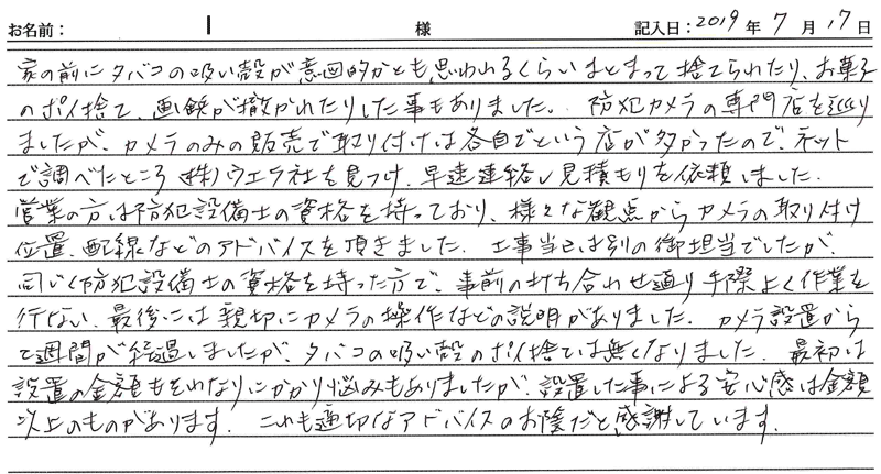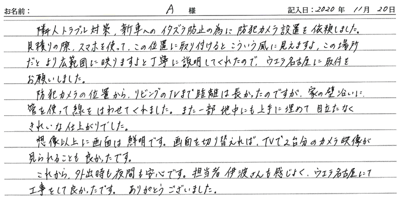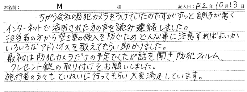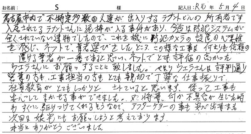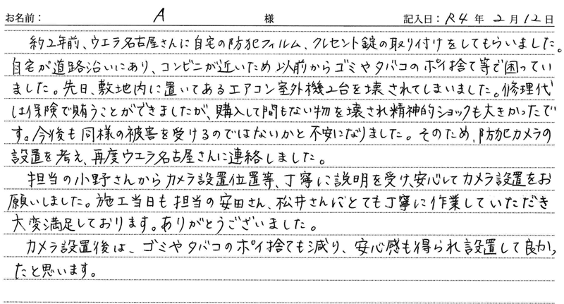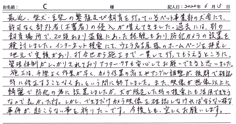 ※これまでに、一般家庭を含め施工させて頂いた中で、ご返信頂きましたお客様の声をご紹介します。