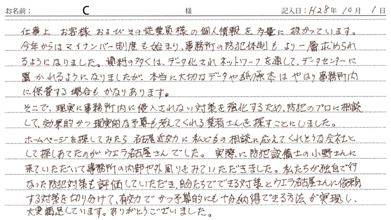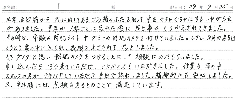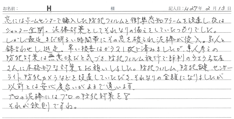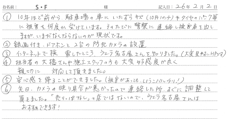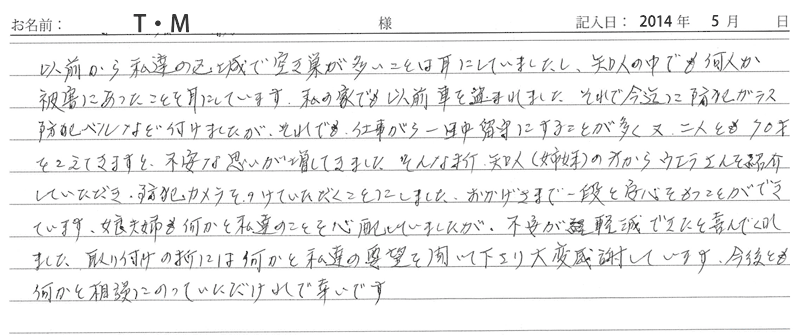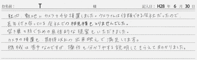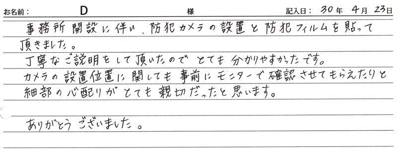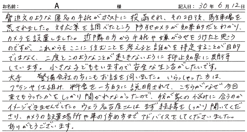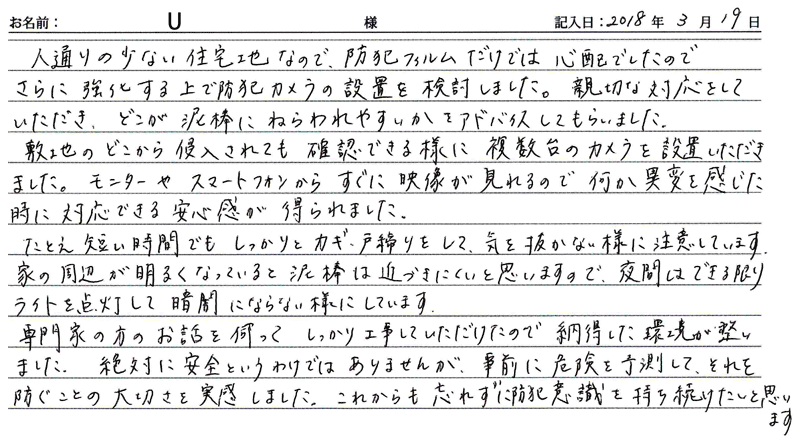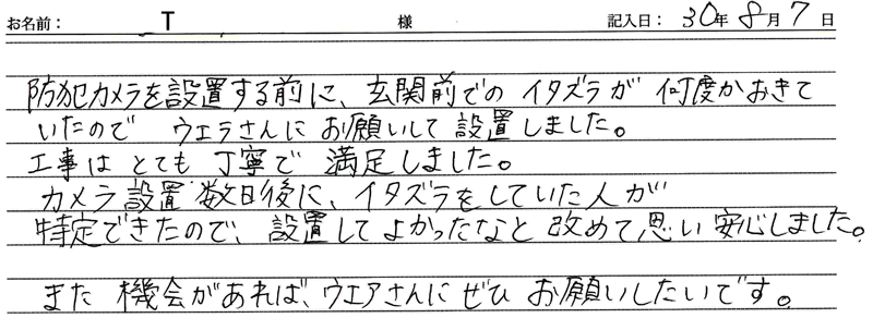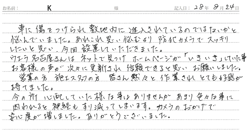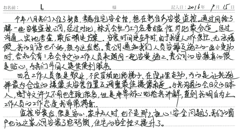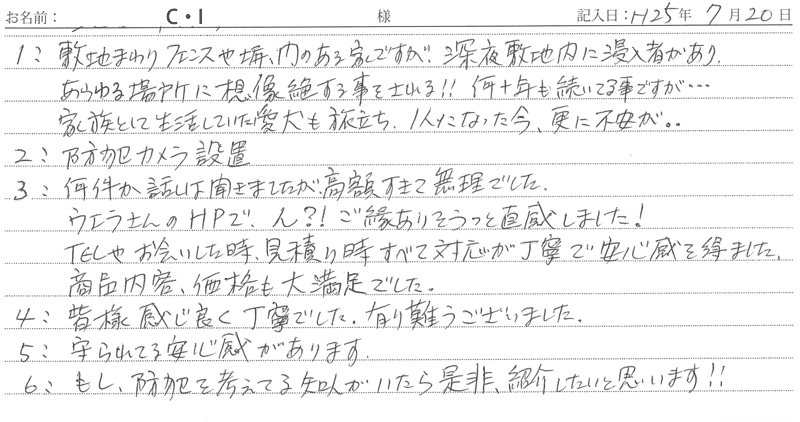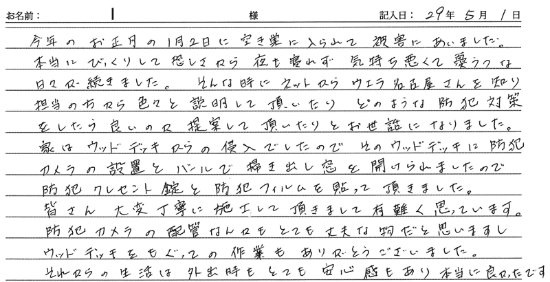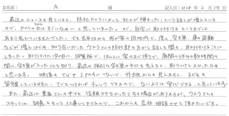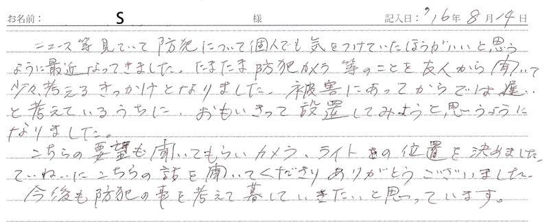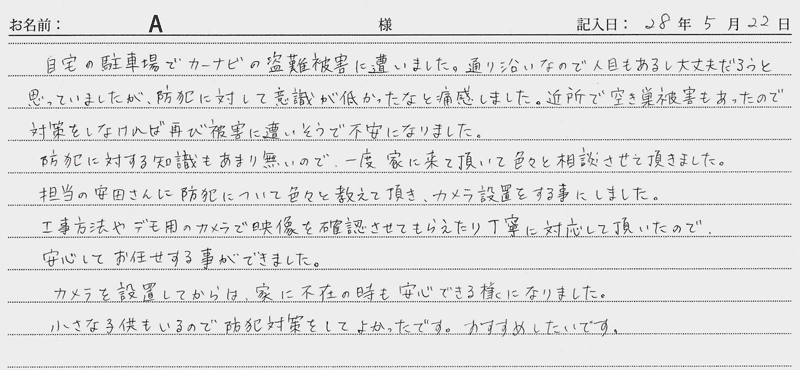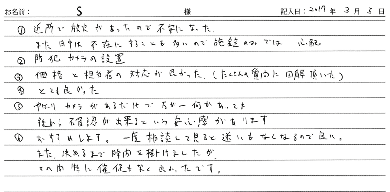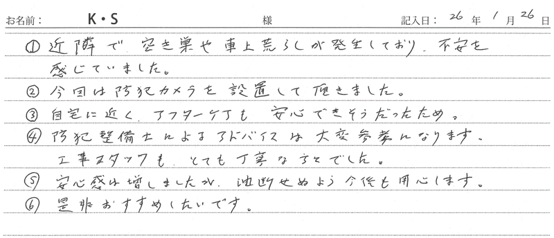 ※これまでに、一般家庭を含め施工させて頂いた中で、ご返信頂きましたお客様の声をご紹介します。