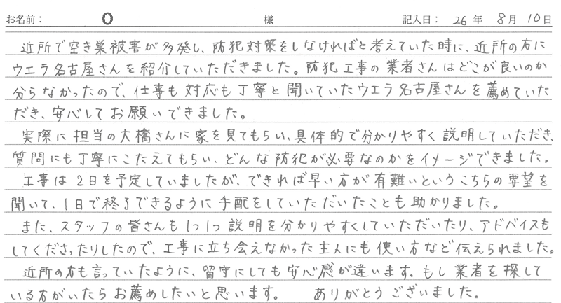 2017/01/31施工 名古屋市中川区在住 O 様