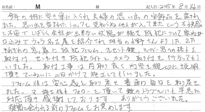2015/08/14施工 愛知県在住 M 様