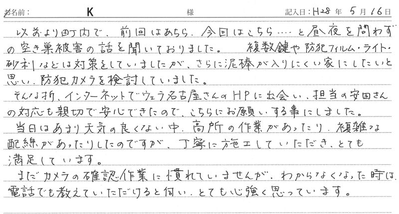 2016/05/16施工 名古屋市名東区在住 K 様
