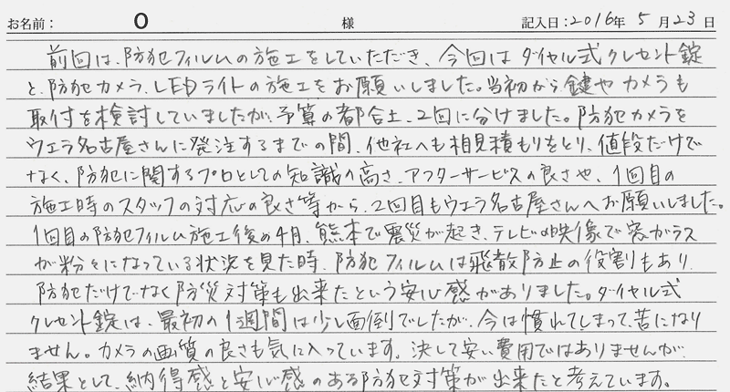 2016/05/23施工 愛知県在住 O 様