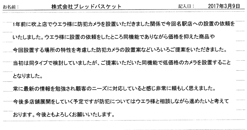 2017/03/09施工 愛知県在住 株式会社ブレッドバスケット 様