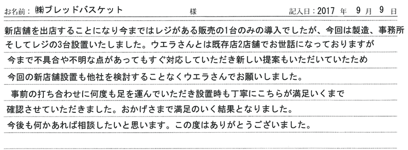 2017/09/09施工 愛知県在住 株式会社ブレッドバスケット 様