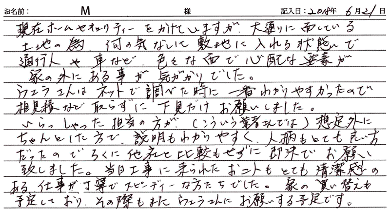 2018/06/21施工 名古屋市守山区在住 M 様