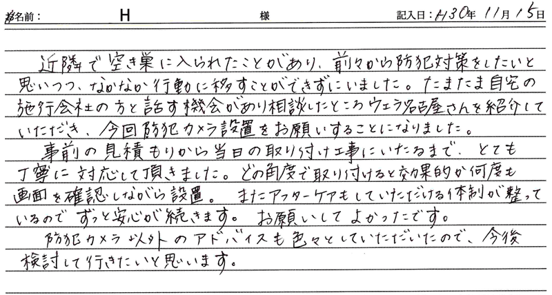 2018/11/15施工 名古屋市在住 H 様