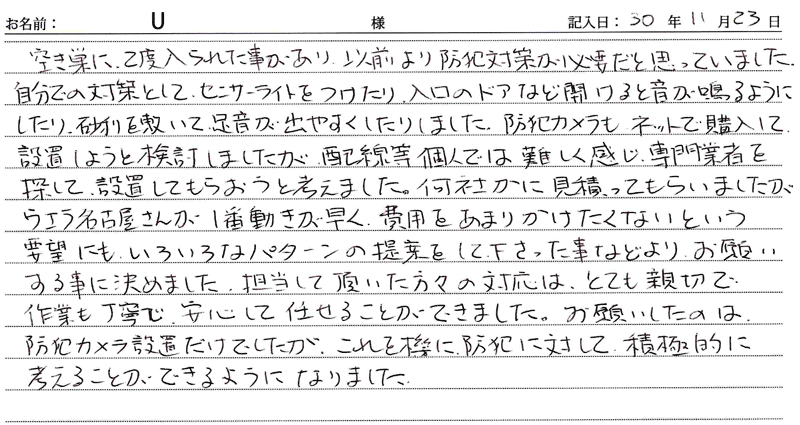 2018/11/23施工 愛知県在住 U 様
