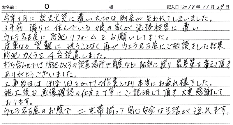 2018/09/04施工 名古屋市守山区在住 O 様